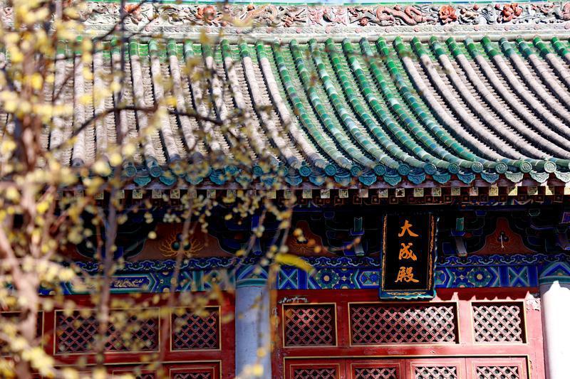 走进文庙,红墙围合的庭院里,既有陈列着历代陶俑、铜器等的展陈区,也有摆着沙发与茶盏的阅读角——彩绘梁枋下挂着“在至圣门前读人间烟火 于方寸案上见天地文章”的楹联,展柜旁的长桌上,仿古建筑造型的点心与奶茶杯并排放置,老人捧着古籍坐在窗边,年轻人端着咖啡驻足碑刻前,历史与生活的边界在此悄然消融。
