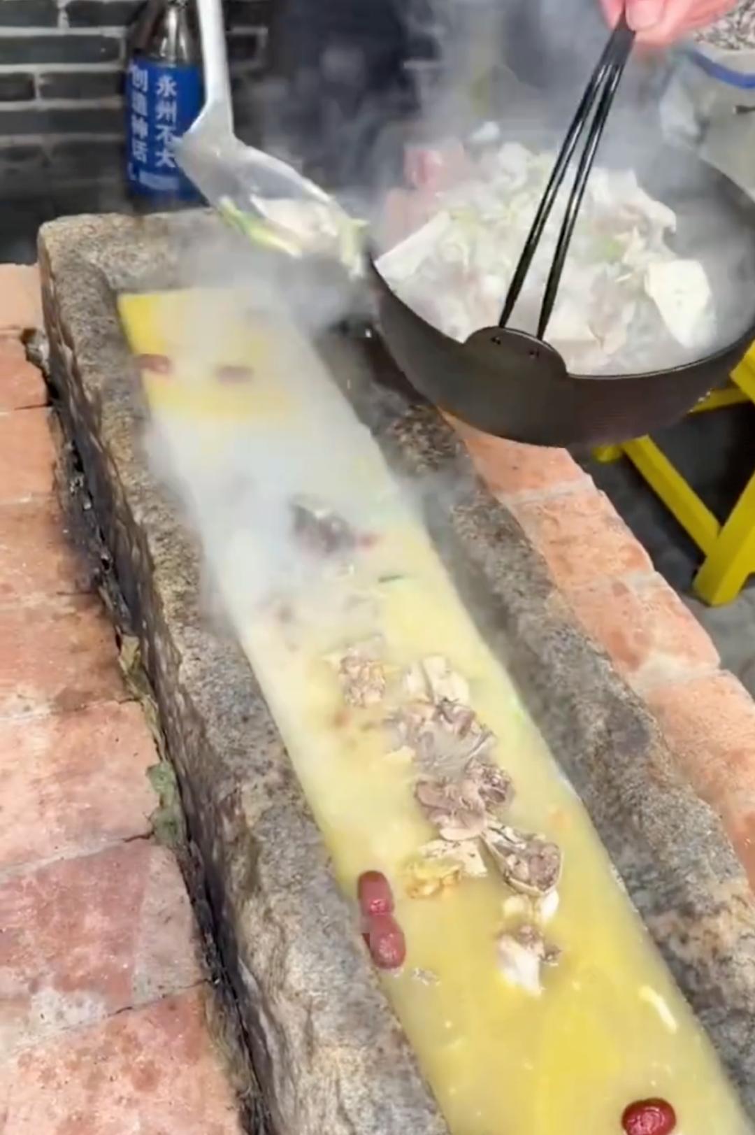 近日,湖南永州一餐馆推出“石槽火锅”,引发网友热议。不少网友调侃:像极了小时候家里的“猪槽子”。