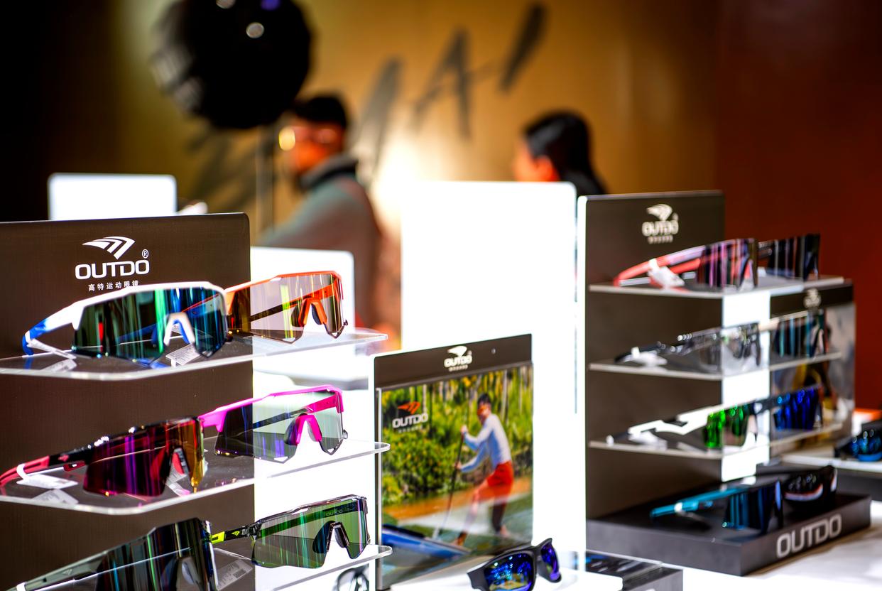 这是1月8日在博览会上拍摄的马拉松比赛专业眼镜展台。新华社记者 魏培全 摄