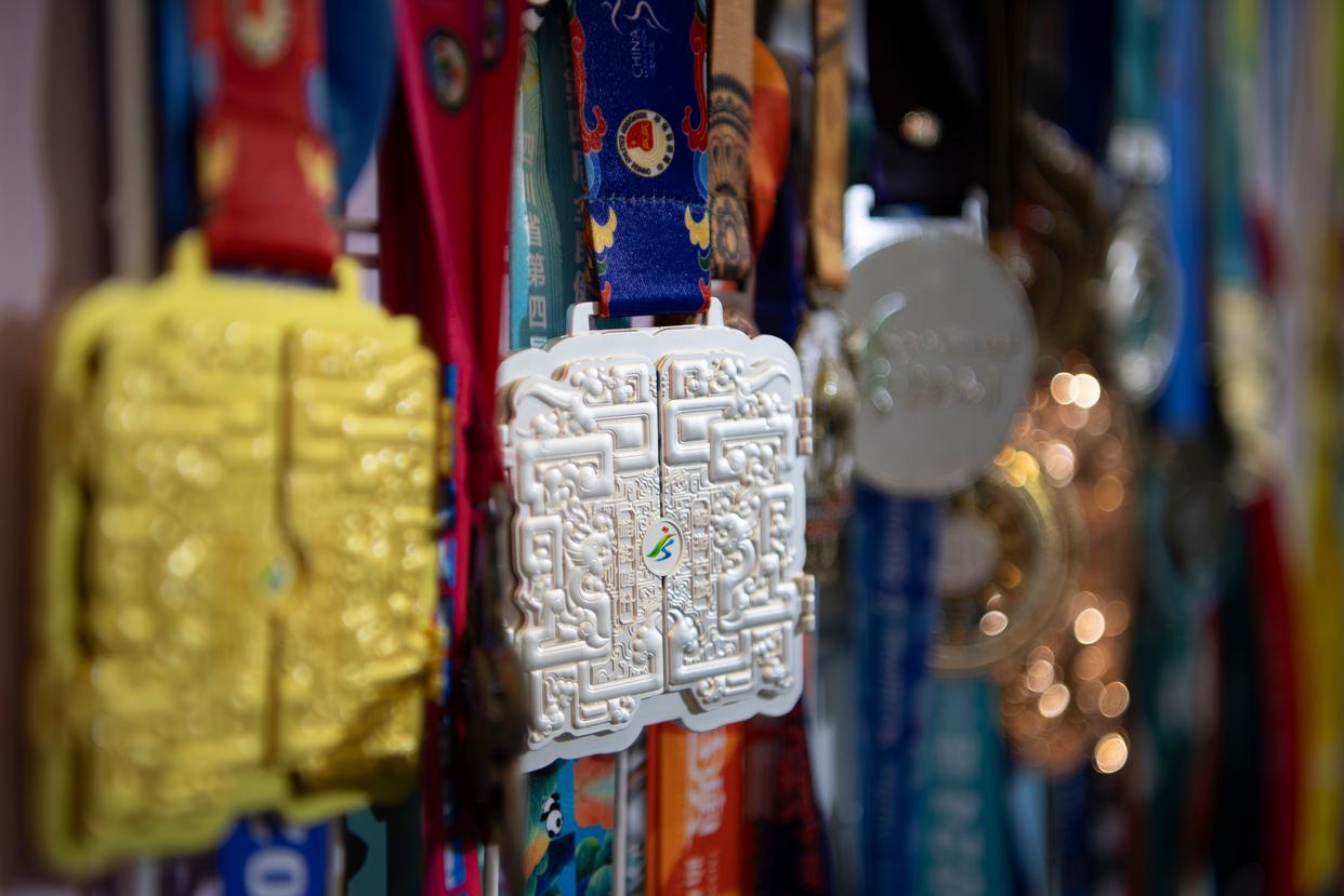 1月8日,一家奖牌生产企业在博览会上展示各种马拉松赛事奖牌。新华社记者 魏培全 摄
