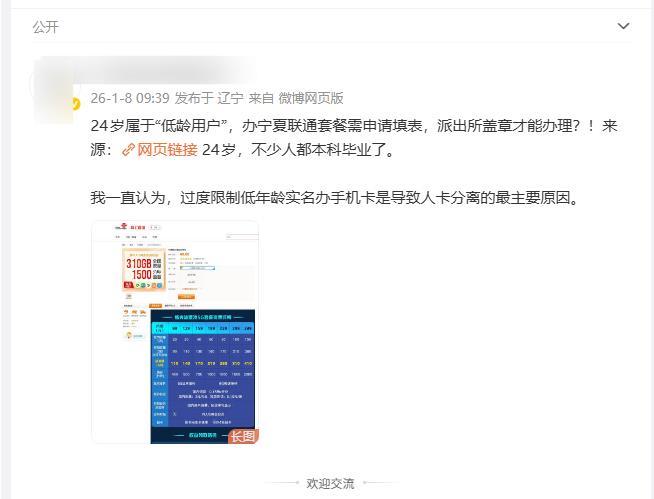 近日,有网友发帖称,宁夏联通认为不满24岁的人属于“低龄用户”,需填表申请,公安机关盖章后才能办理电话卡。1月8日,宁夏联通客服人员称,目前,未满23周岁的用户,如果已有1张电话卡,要再新办1张电话卡,需填写《低龄用户办理号码申请单》,并加盖公安机关公章。宁夏通信管理局工作人员告诉极目新闻记者,确有相关规定,此前当地低龄用户出售电话卡的情况较多,通过此举,一定程度上能够降低出售电话卡的概率,后续也会对这些号码进行追踪保护。