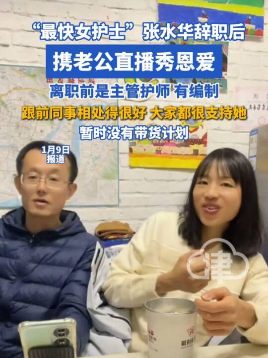 2026年1月8日晚,“最快女护士”张水华与丈夫王岢一同现身社交媒体直播,这也是她自1月2日宣布辞职后,再次尝试主动与网友互动。据张水华介绍,开直播是想跟大家多分享跑马拉松的知识,暂时还没带货计划。