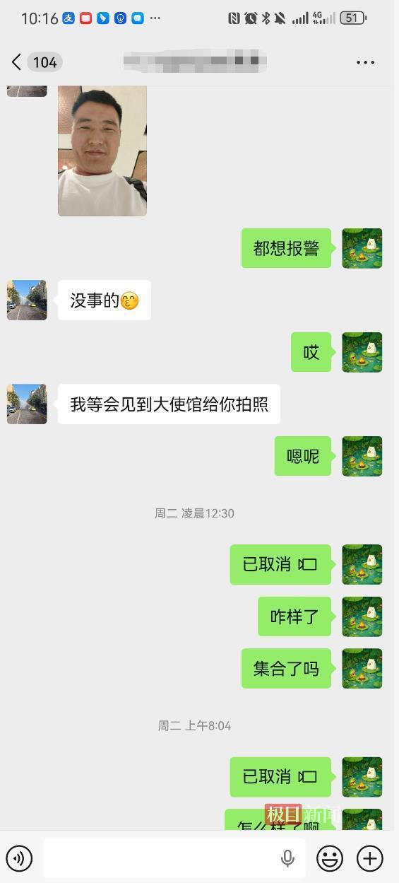 丁女士提供的与丈夫的聊天记录显示,她一直担心着丈夫的安全,多次嘱咐丈夫不要出机场,卞昌鹏到达机场后称“有大使馆的人来接”。12月23日凌晨,夫妻俩通了视频电话,但直到12月24日10时30分,丈夫才再一次联系丁女士,“他在微信电话中说我婆婆的鼻梁骨断了,让我带她去看病,还说家里没钱治,让我去找村书记借钱,还嘱咐我把两个孩子照顾好,别让考试成绩倒数第一。他说话的语气特别消沉,明显不对劲,我后来也打电话问婆婆,她的鼻梁骨根本没断。”