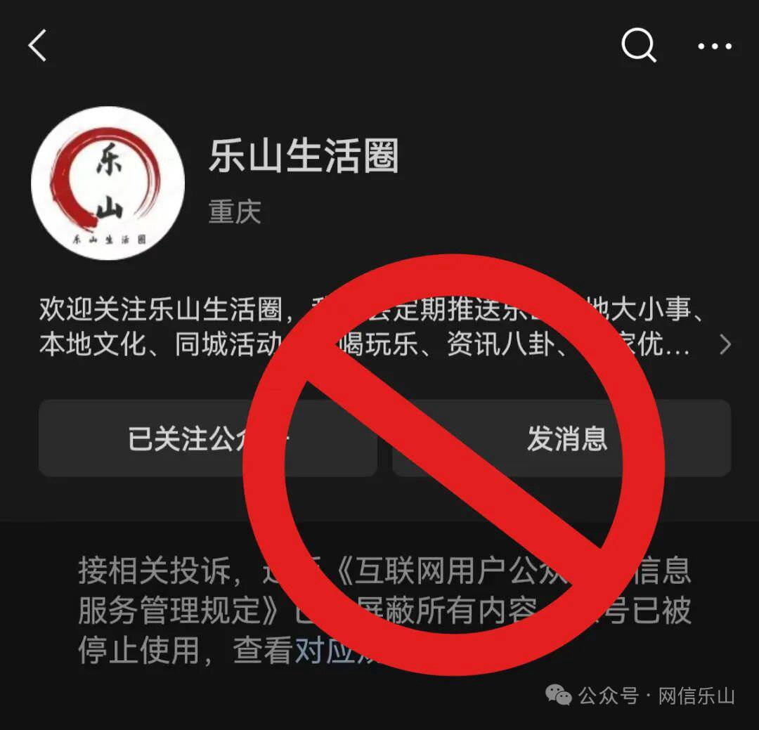 1月10日,网信乐山发布消息,近日,某公司未取得互联网新闻信息服务许可,其所属微信公众号“乐山生活圈”违规开展互联网新闻信息服务,转载、发布新闻信息,扰乱网络传播秩序,已被依法依约关闭。