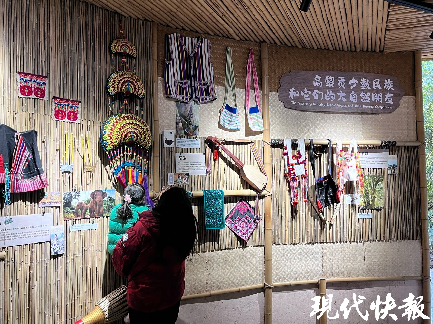这次升级还藏着满满的文化彩蛋,在线纹闭壳龟展示窗旁,专门增设了少数民族文化展墙,聚焦9个世代生活在高黎贡地区的民族与动植物的“共生故事”。其中,傈僳族将白眉长臂猿称为“甲米呜呼”,以其鸣叫声作为天然天气预报,主动守护这一物种;犀鸟则是景颇族的文化符号,先民追随着犀鸟足迹定居德宏,开启与自然共生的生活。展墙旁还陈列着多个民族的特色乐器,游客可亲手互动体验,感受不同民族文化的交融。
