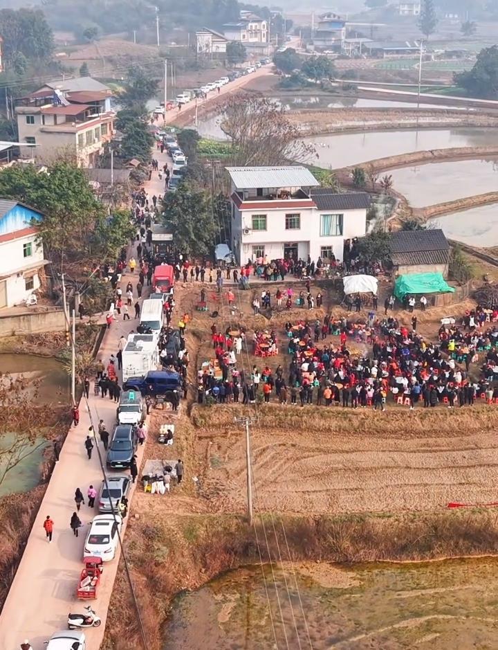 1月12日,流水席继续,仍有大量网友闻讯赶到合川区云门街道庆福村的呆呆家。记者注意到,一些网友驱车带着猪上路,他们表示,呆呆家的猪可能不够吃,愿意献出自家的猪来招待网友。