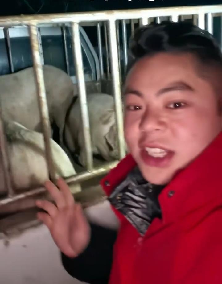 来自重庆市荣昌区的曾先生,和一个开养殖场的朋友一起,开着皮卡带着猪于12日凌晨到达了庆福村。12日下午,曾先生告诉极目新闻记者,他们车里共装了9头猪,4头小的已经放进呆呆家的猪圈,希望她养着,5头大的还在车上待宰,“这是我们荣昌特色的‘熊猫猪’,肉质美味,希望网友们品尝一下。”