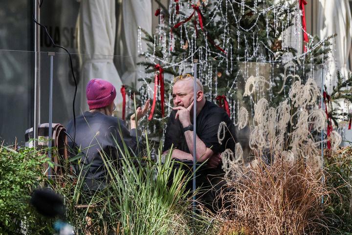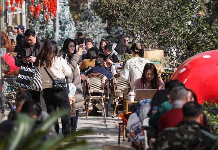 1月13日,消费者在上海市安福路街头的外摆位上休息。新华社记者 丁汀摄