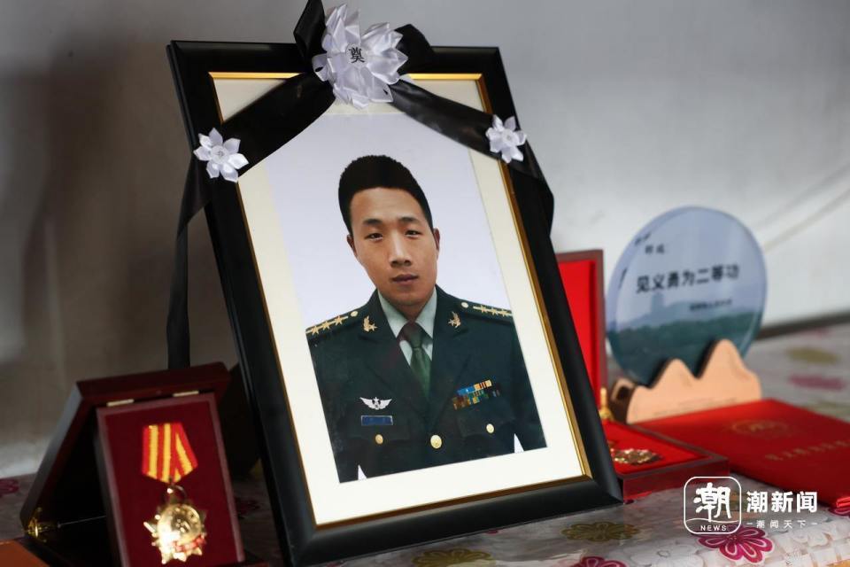 遗像里,邵瑞穿着军装,眼神同样坚定。