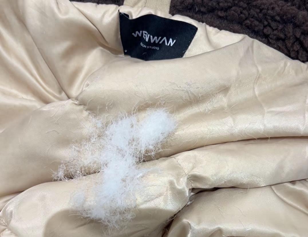 测评视频发布后引发网友关注,有许多消费者在评论区晒出了自己所购同款羽绒服飞丝的情况。记者联系到一位来自河南的消费者,她表示自己曾是网红“温婉”的粉丝,在她的店铺下单几十次。“我看到测评博主发布的打假视频中的羽绒服,跟我2024年初购买的是同一款,我就把我那件衣服也剪开了,没想到里面还真是飞丝的。”该消费者表示,自己当时购买的这件羽绒服,洗完后出现了结块的情况,当时并没多想,只是用防尘袋装了起来,没再穿过。这次因为测评博主的视频才想起来有这件衣服,剪开以后,非常失望。