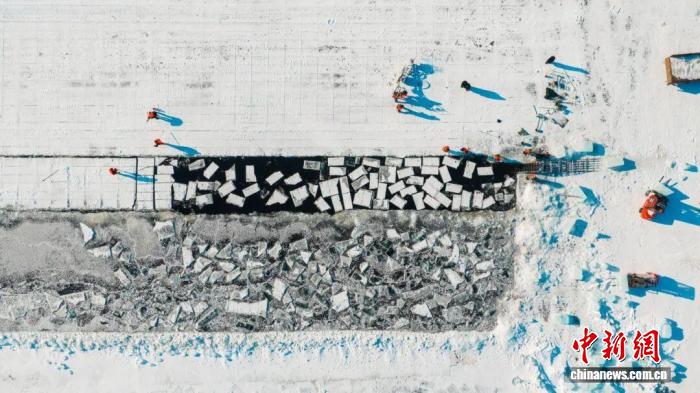 第二十八届哈尔滨冰雪大世界的存冰开采工作于1月15日全面展开。冰雪大世界供图