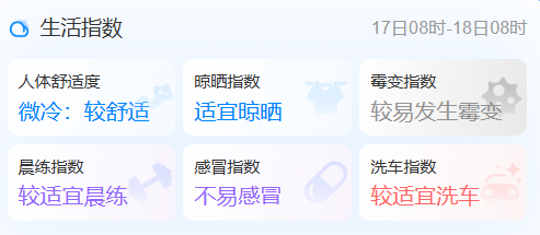 17日白天:多云到阴天,有霾 17日晚上:阴天到多云,有霾 最高气温:14℃, 最低气温:7℃ 湿度:50-90%, 风:偏北风3到4级转2到3级 18日天气:阴天,晚上转小雨 最高气温:17℃, 最低气温:5℃ 湿度:50-95%, 风:偏北风2到3级转3到4级、阵风5到7级 19日天气:小雨转中到大雪 最高气温:6℃, 最低气温:-2℃ 湿度:55-95%, 风:偏北风4到5级、阵风6到8级