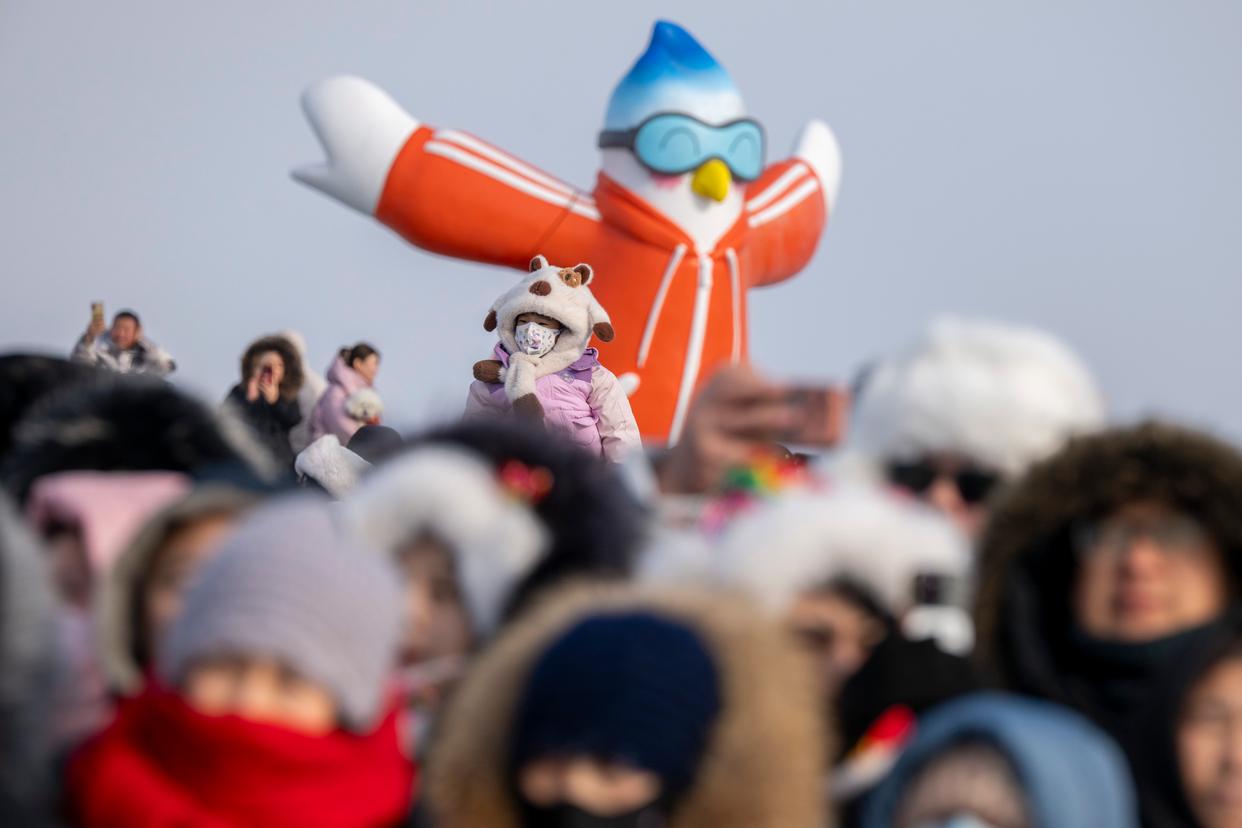 1月17日,市民和游客在2026年兴凯湖冬捕节现场观看演出。新华社记者 张涛 摄