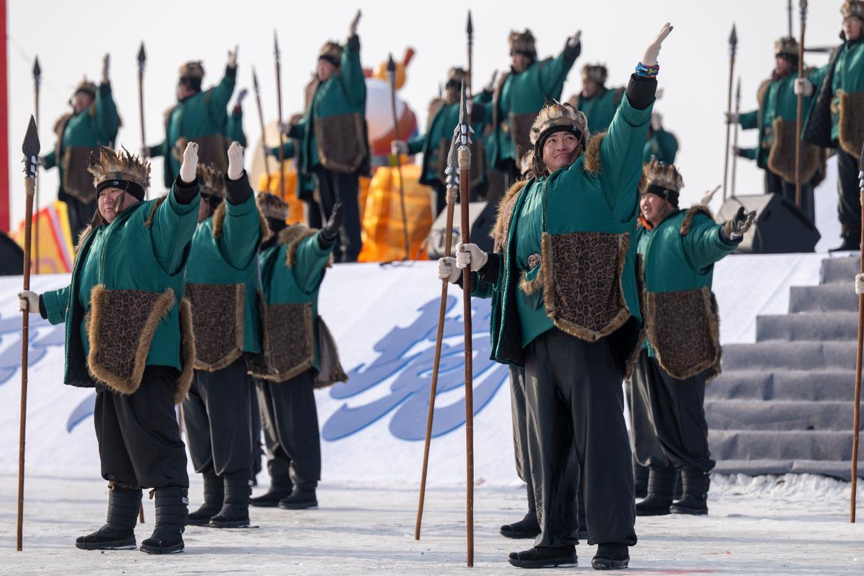 1月17日,演员在2026兴凯湖冬捕节现场表演传统节目。新华社记者 张涛 摄