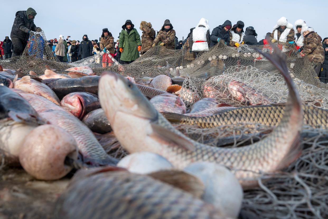 1月17日,2026兴凯湖冬捕节在中俄界湖兴凯湖畔启幕。人们在现场共同见证千米大网破冰而出,万鱼腾跃竞逐的震撼场景,感受传承千年的肃慎渔猎文化,体验北国边境冰雪文化独特魅力。本届冬捕节以“文化+体育+旅游”融合发展为理念,精心打造全链条沉浸式体验矩阵,将“冷资源”转化为“热产业”。