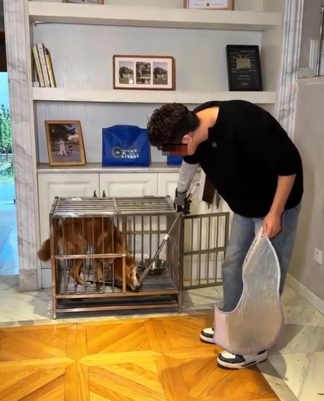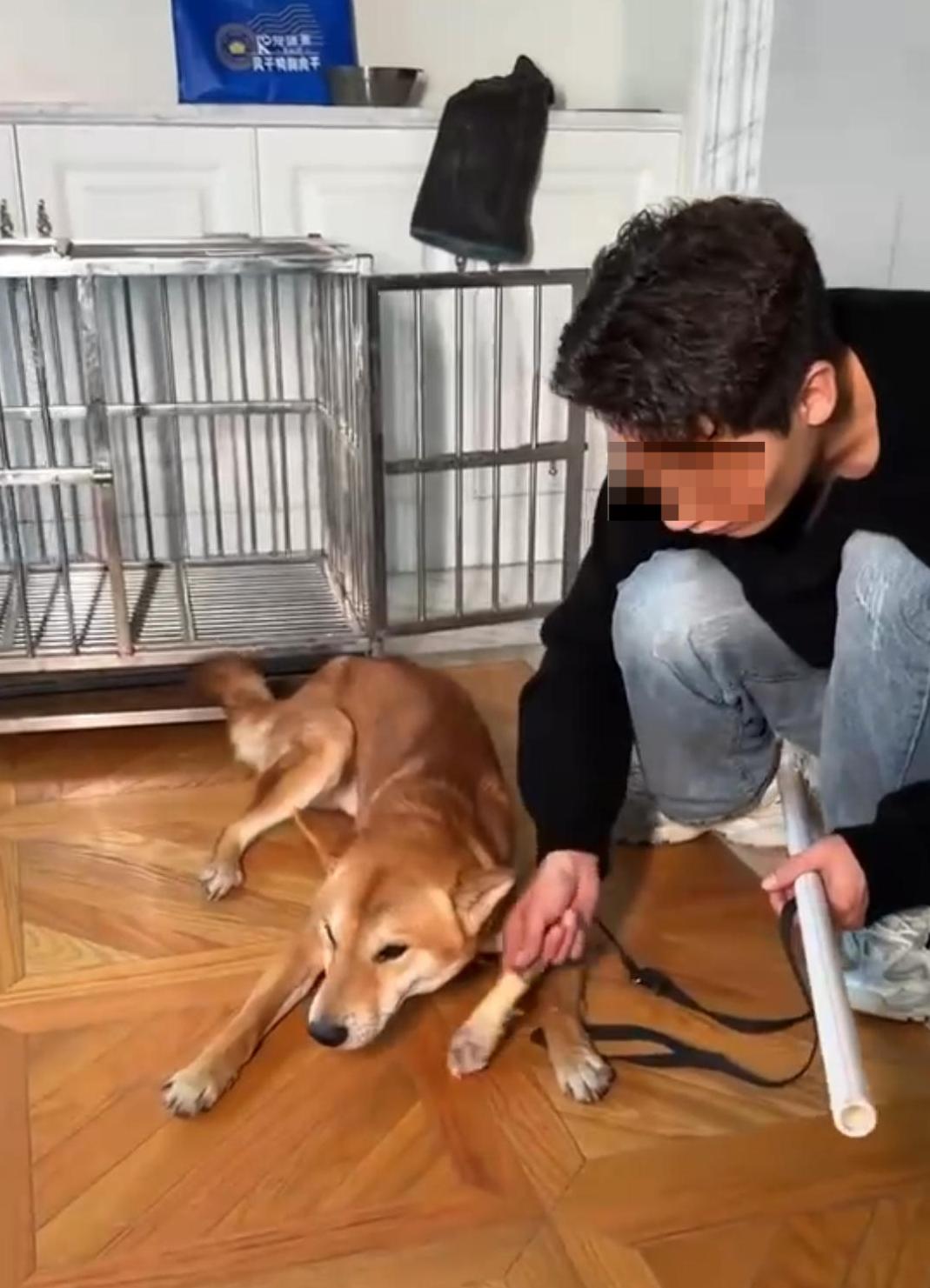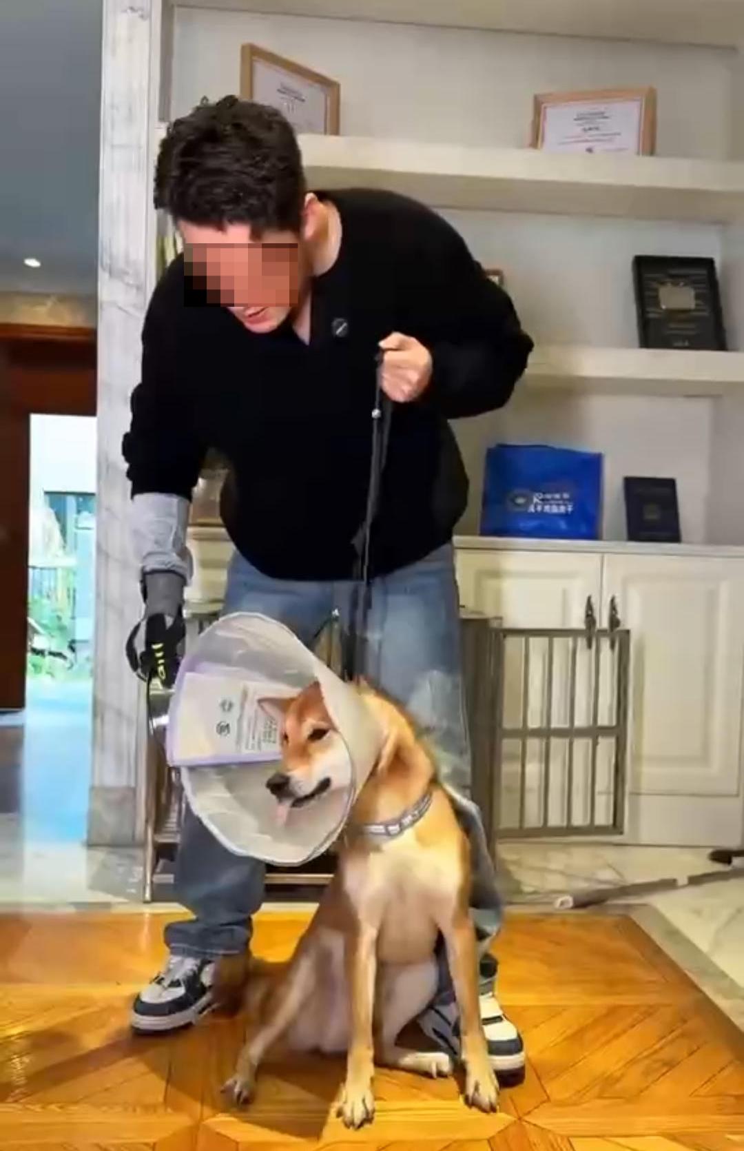 ▲梁先生在自媒体平台发布的训导“旺柴”画面