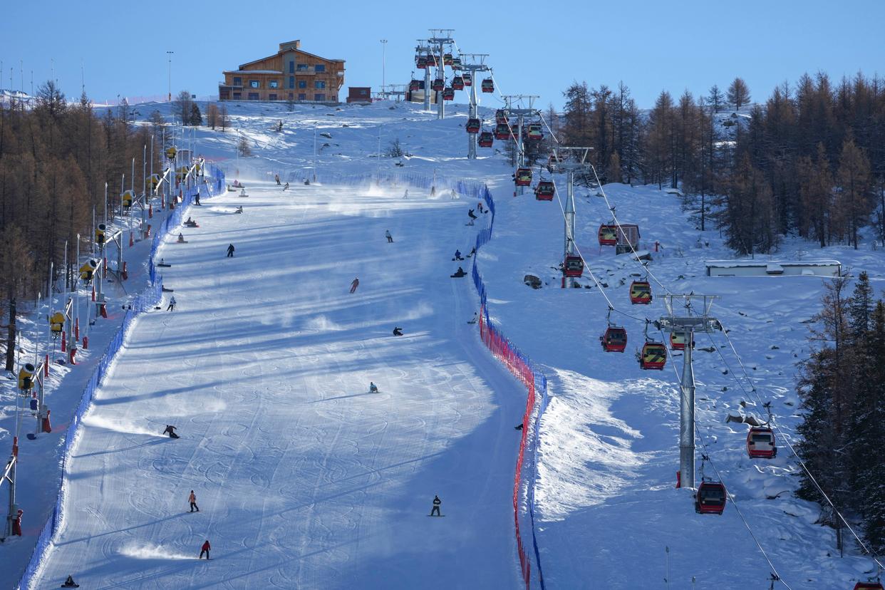 1月17日,雪友在可可托海国际滑雪度假区滑雪。新华社记者 胡虎虎 摄