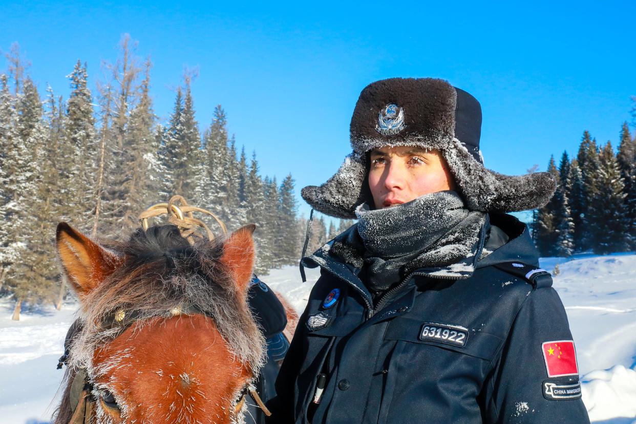 1月15日,阿勒泰边境管理支队喀纳斯边境派出所马队巡护队民警在户外巡逻。新华社发(王友波 摄)