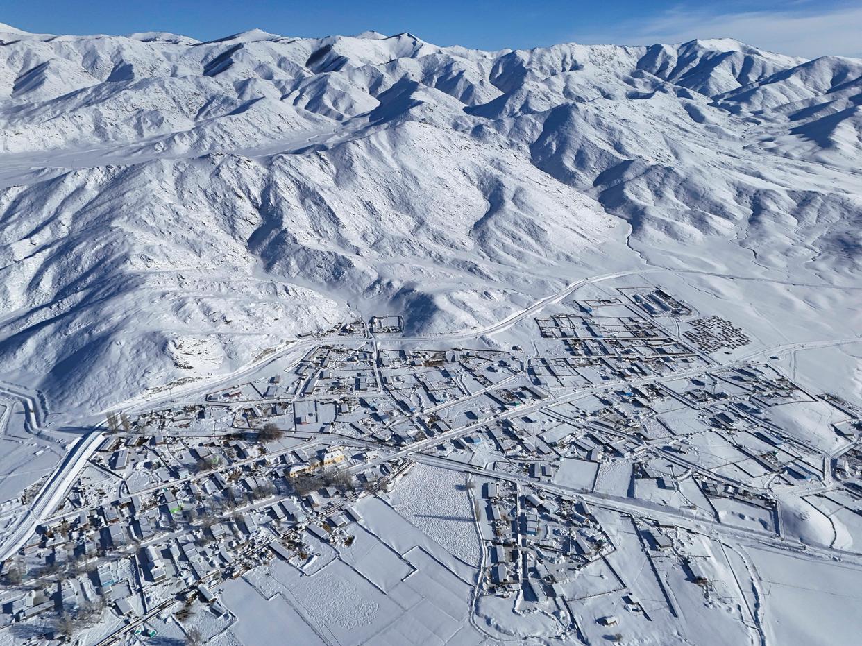 这是1月16日拍摄的新疆富蕴县吐尔洪乡政府及周边村庄(无人机照片)。新华社记者 胡虎虎 摄