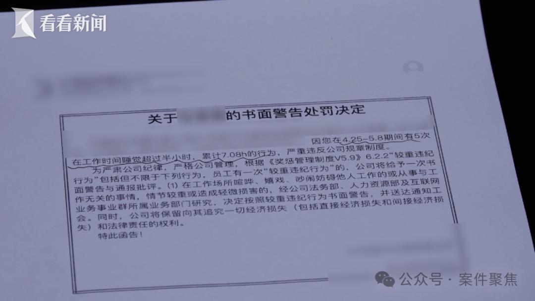 然而,在外包公司办公地工作三个月后,小陈突然收到了外包公司的书面警告,原因是她“5次工作时间睡觉超过半小时”。随后一天内,小陈又连续收到了三份口头警告,理由分别是“擅离工作岗位”“工作时间吃外卖”以及“未经批准在工作场地使用个人电脑设备”。