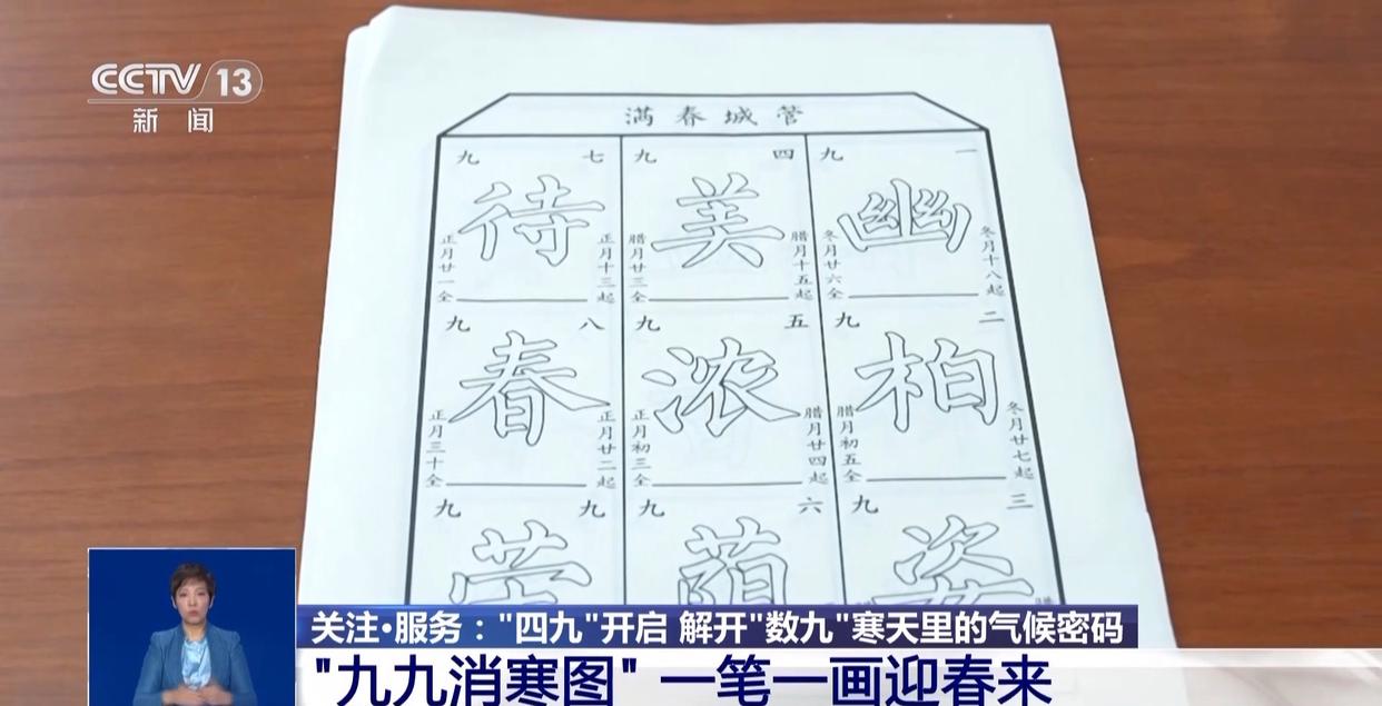 “数九”习俗最早见于南北朝《荆楚岁时记》,距今已经有一千四百多年了。数完九九八十一天,冬去春来。古人将这看似枯燥的等待,变成了一场全民参与、充满趣味的“画九”“写九”习俗,使气候由寒转暖的过程跃然纸上,既是一种科学记录天气变化的活动,也是一场陶冶性情的冬日雅趣。