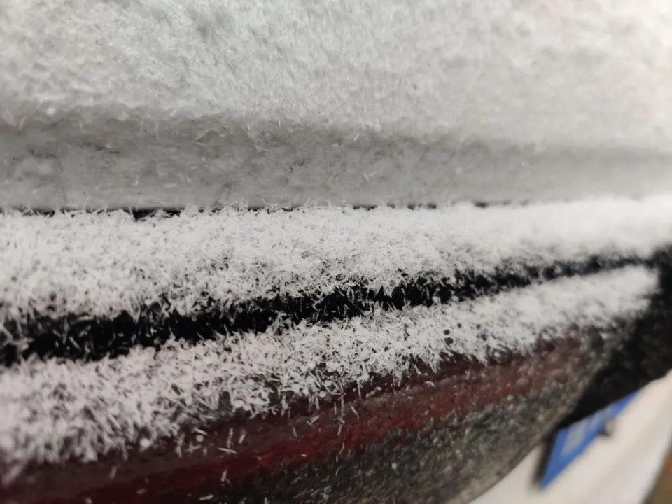 再加上今天济南高空风力微弱、云层较薄,满足了针状雪花形成的“苛刻条件”,才让济南市民偶遇了这场特别的降雪。其实它还有个学名“冰针雪”,虽不常见,但在干冷天气里偶尔会现身。