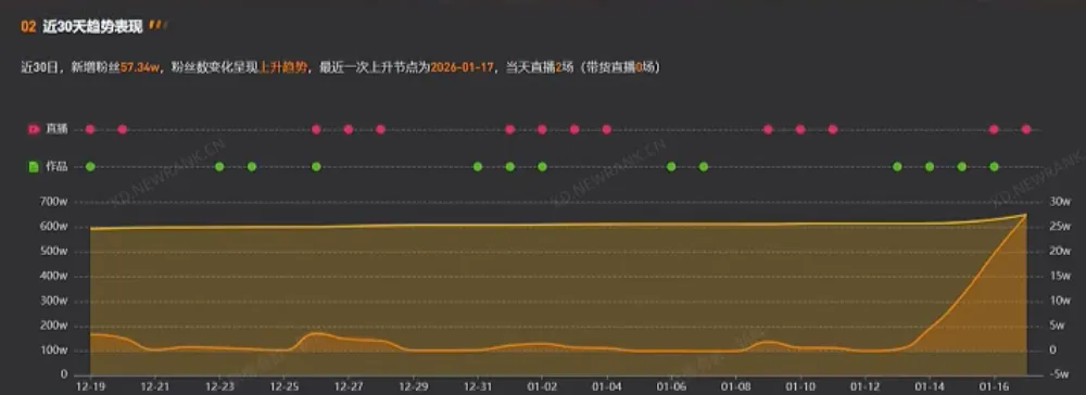 1月18日搜索发现,据第三方数据平台,李亚鹏1月17日直播5个小时,销量在10万-25万,销售额在1000万-2500万元,为近30天销售额最高的直播。此外,李亚鹏近30天新增粉丝57.34万。