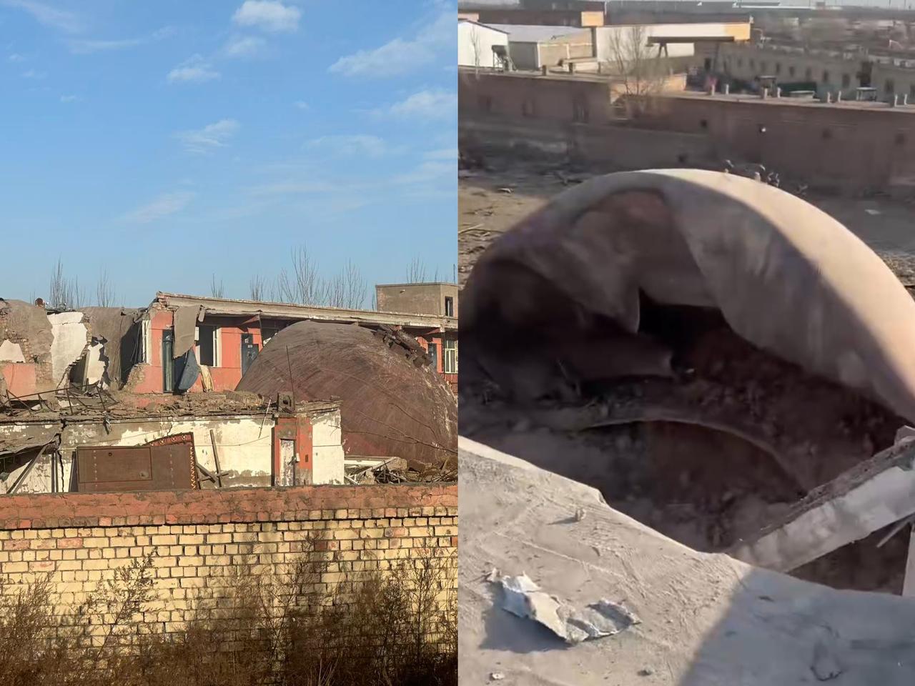 上述崔某告诉记者,经他了解,砸塌李先生宾馆隔壁民房的大铁罐是爆炸后飞过来的一个东西。他暂不清楚这是什么设备,“直径有六七米,把地面砸出了坑。”此处民房是外来户盖的,没有人居住。事发后,现场已封锁并安排人员值守,等待相关部门调查处理。