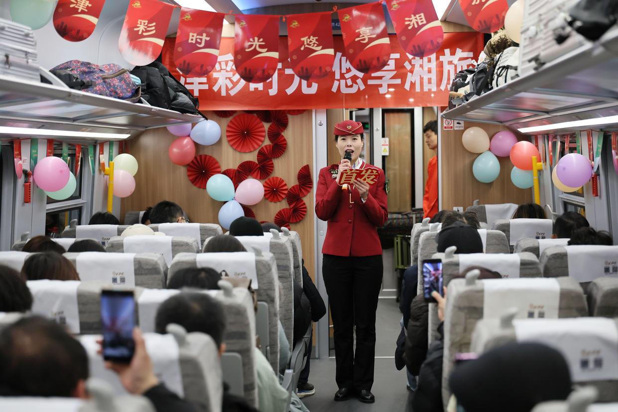 1月19日,天津首次开行复兴号动力集中型动车组列车。该趟列车由天津站始发,终到长沙站。本次开行的动集列车相较原直特列车在车厢布局、设施等方面进行了优化升级,为旅客带来品质升级的出行新选择。