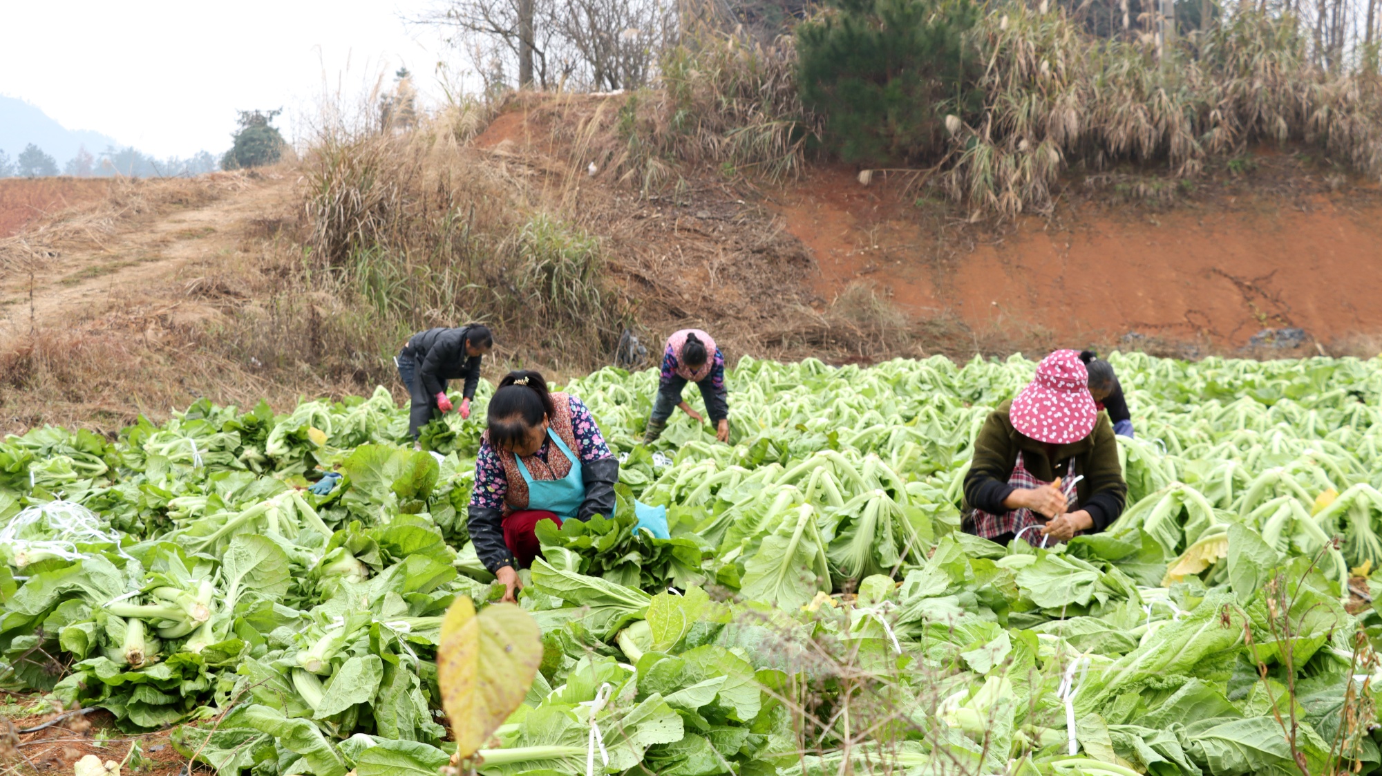 村民正在采摘青菜(独山县融媒体中心供图)