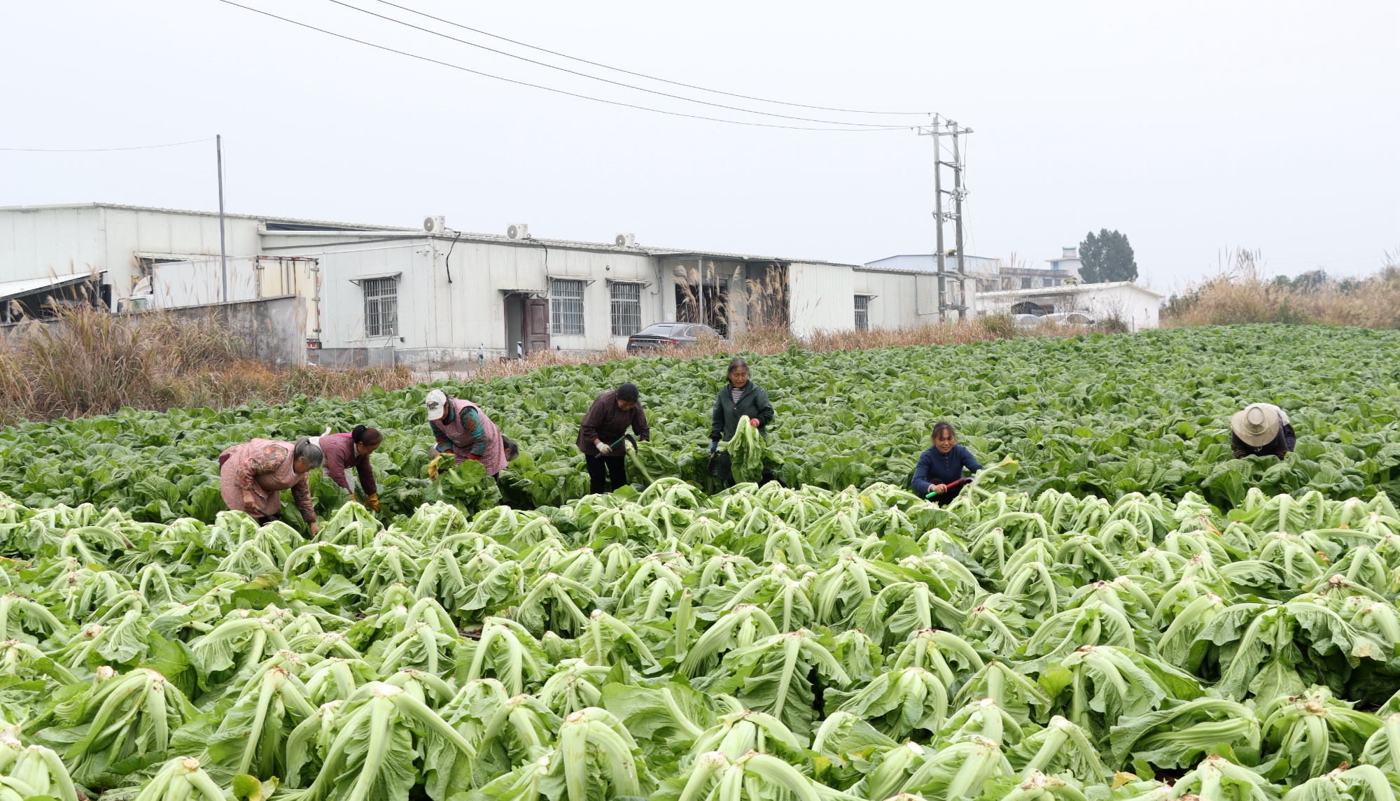 田间地头,农户们穿梭往来,采摘、捆扎、装车等工序一气呵成,一辆辆满载新鲜蔬菜的货车依次驶出基地,勾勒出一幅人勤菜丰、民富村兴的丰收画卷。