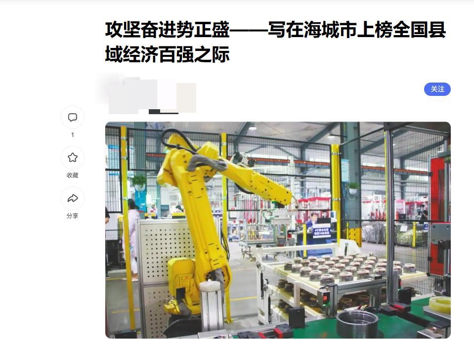 公开信息显示,海城是鞍山代管的县级市。相关报道提到,2025年7月23日,2025县域经济创新发展论坛在北京举行。《2025中国县域经济高质量发展研究》报告及2025全国县域经济百强榜单,正式发布。辽宁省海城市跻身中国县域经济百强县行列,位列第91位,实现了在全国县域发展中的争先进位。这一“成绩”还写进了海城市2025年政府工作报告。而发布这一榜单的机构为“赛迪顾问”。