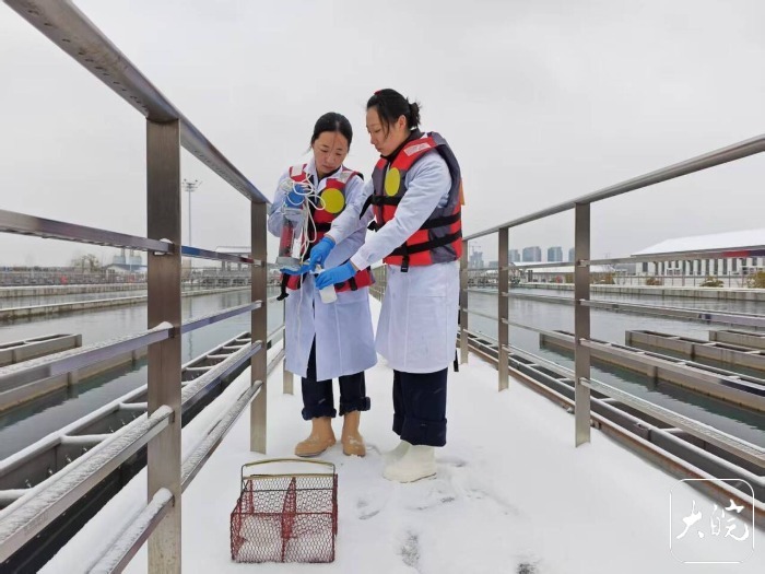 上午10点多,陈玲玉和两名同事来到浓缩池进行巡查。陈玲玉表示,遇到雨雪天气,厂区人员会加强巡查力度,确保设备安全运行,保持管网安全平稳。
