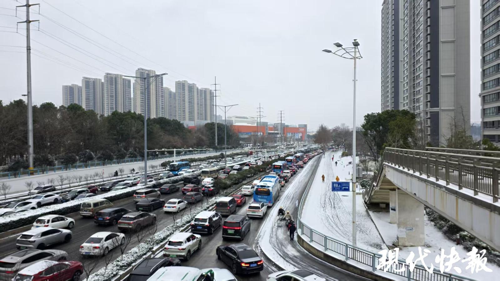 也有市民发现,以往下雪,高架道路至少通畅,而这次不少高架桥也出现结冰打滑的情况。对此,相关人员表示,早高峰前雪下得急且大,边下边除,加之气温较低,来不及除干净,因此出现了路面结冰的情况。