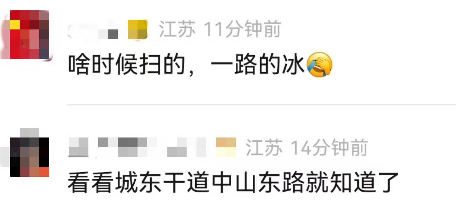 在社交平台上,一些网友也发出了雪天南京部分路面结冰的照片,有些路段还出现了车辆碰擦事故。有网友留言称,一路走过来,很少看到像往年那样,大家热火朝天齐上阵、合力扫雪除冰的场景。