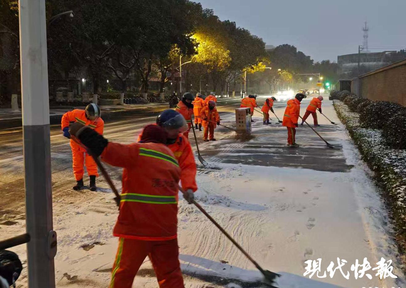 那么南京是如何应对雪情的呢?现代快报记者了解到,南京有一套扫雪防冻应急机制,市扫雪防冻指挥部根据雪情适时启动应急预案。全市按照“条块联动、属地管理、以块为主”原则,实行辖区管理、分级负责、分片包干、责任到人,重点保障快速道路、主次干道、桥梁高架、隧道出入口、窗口地区等关键区域,同时妥善解决区域接合部扫雪责任问题。各职能部门要开展社会动员,各街道要结合包段定责确定党政机关、社会单位力量扫雪区域,要求沿街商户、小区物业等落实“门前三包”责任等。
