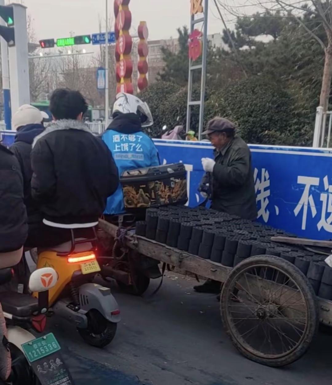 19日,齐鲁晚报·齐鲁壹点记者联系到这位步行在泰安街头拉蜂窝煤的老人。据悉,老人今年75岁,从事送煤工作已经30年。回想起16日傍晚的事情,老人连连夸赞这位外卖员善良。