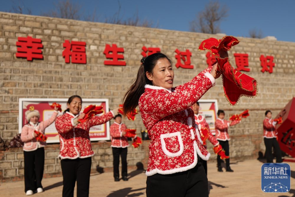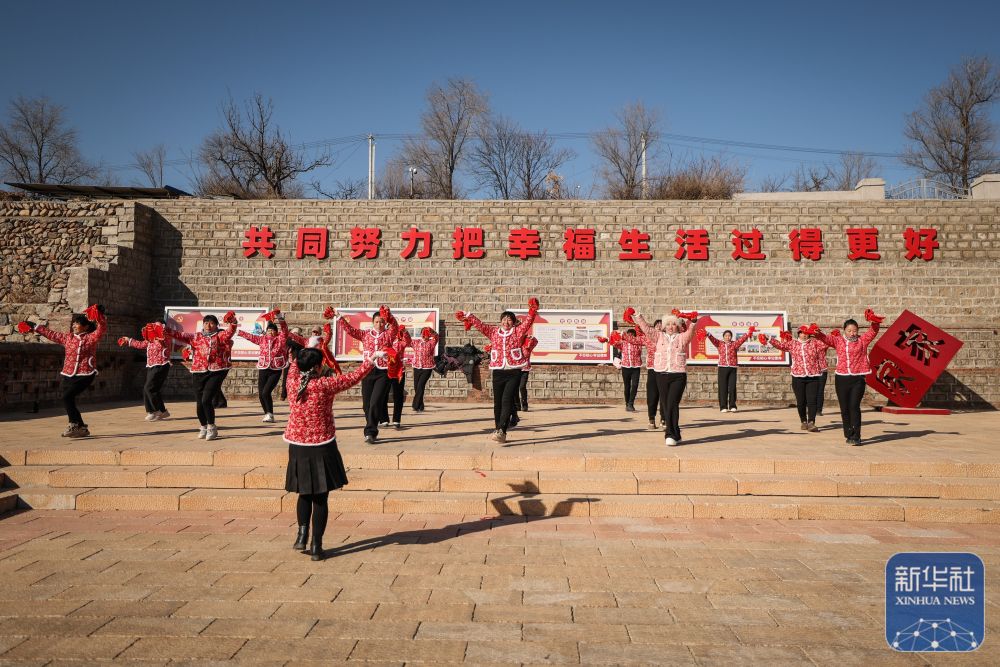 ↑1月20日,村民在祝家沟村家文化广场练习舞蹈。新华社记者潘昱龙摄