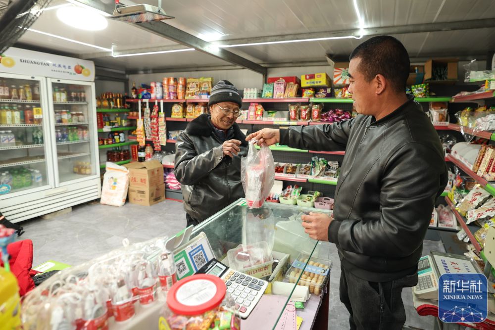 ↑1月20日,村民在祝家沟村的一个小卖店中选购商品。新华社记者潘昱龙摄