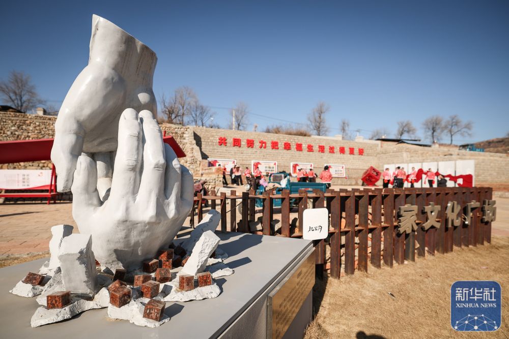 ↑这是1月20日拍摄的祝家沟村家文化广场前的雕塑作品。新华社记者潘昱龙摄