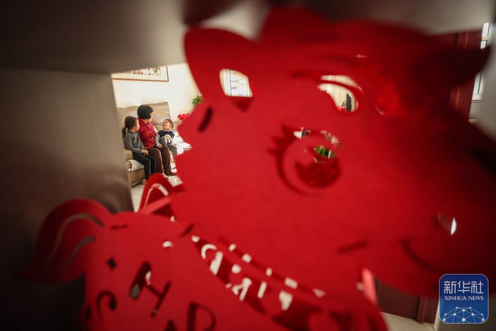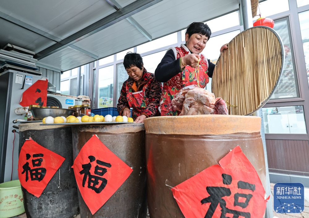 ↑1月14日,祝家沟村村民唐凤杰(右)在家里准备年货。新华社发(田嘉摄)