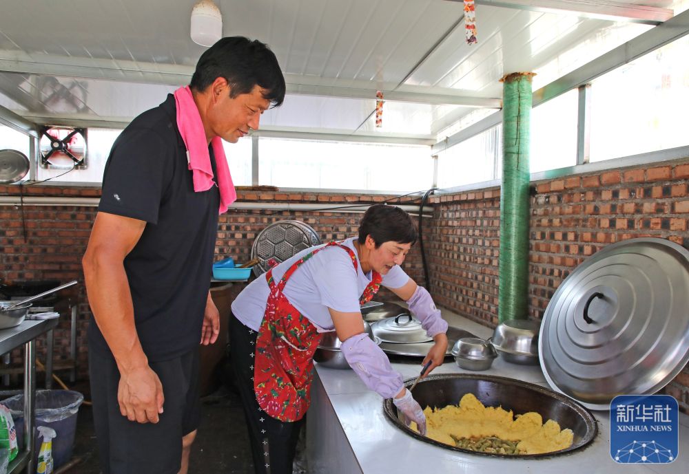 ↑村民朱西存与媳妇唐凤杰在灶台前为来农家乐的客人准备午餐(2025年7月2日摄)。新华社发(田嘉摄)
