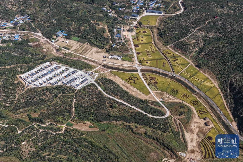 ↑这是2025年9月拍摄的祝家沟村的稻田画(无人机照片)。新华社发(田嘉摄)