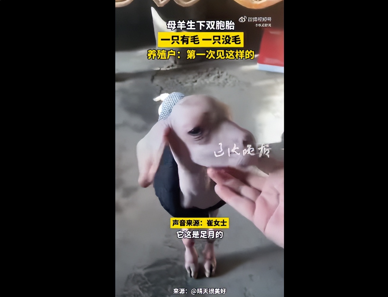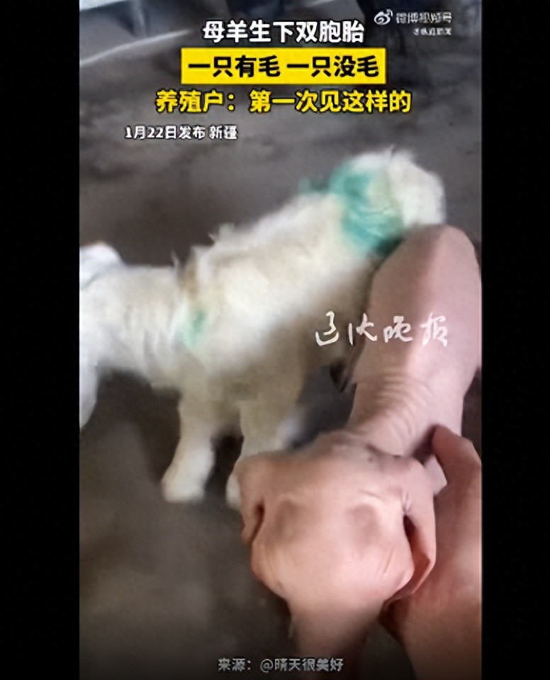 1月22日,新疆一只母羊产下双胞胎,竟出现一只有毛、一只无毛的罕见情况。