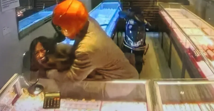 新京报记者获悉,事发18日。监控画面显示,店面卷帘门正在关闭时,戴头盔的嫌疑人从门缝钻入,殴打、电击店主,砸坏货品柜取走财物。