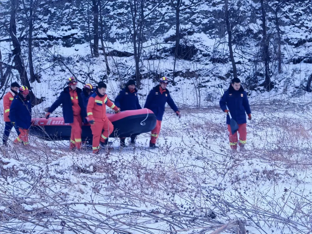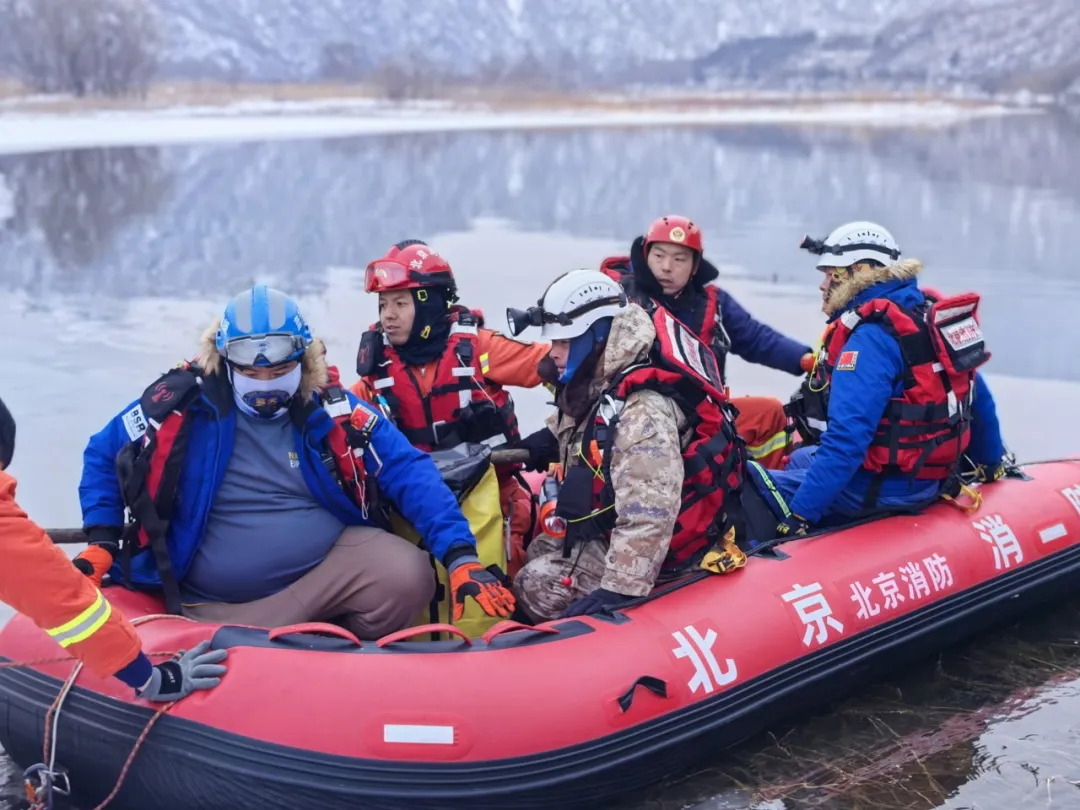 冲锋舟转运伤员。1月19日上午8时许,第一名被困者被冲锋舟成功护送至对岸,9时许,第二名被困者也顺利抵达对岸,两人被移交120送往医院进一步检查。至此,这场跨越三天两夜的风雪救援结束。
