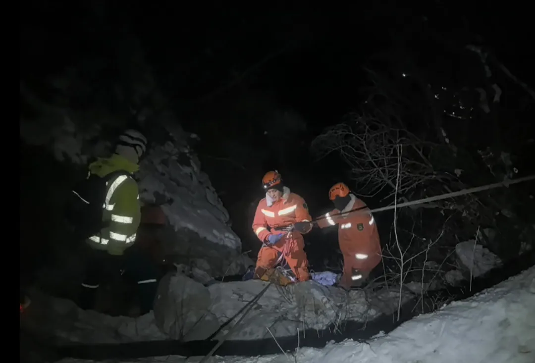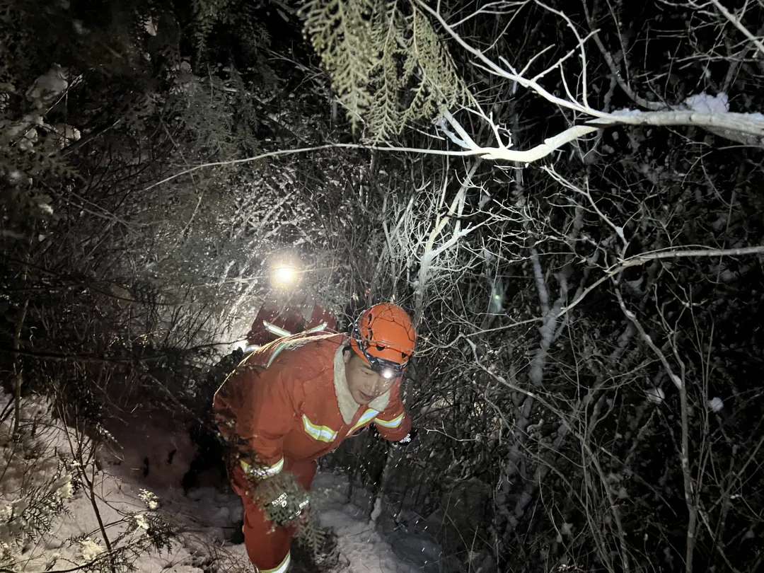 夜间,降雪还在增强,道路结冰湿滑,再加上两名被困者均存在受伤情况,营救工作十分急迫。上山过程中,消防员背负着数十公斤重的装备物资,深一脚浅一脚地在雪地里艰难跋涉。1月18日凌晨2时许,救援队伍行进至距被困者四分之一路程处时,遭遇极端路况:山脊道路陡峭险峻,两侧皆是悬崖,而被困夫妻所在位置恰好在山谷部位,队伍无法继续安全通行。