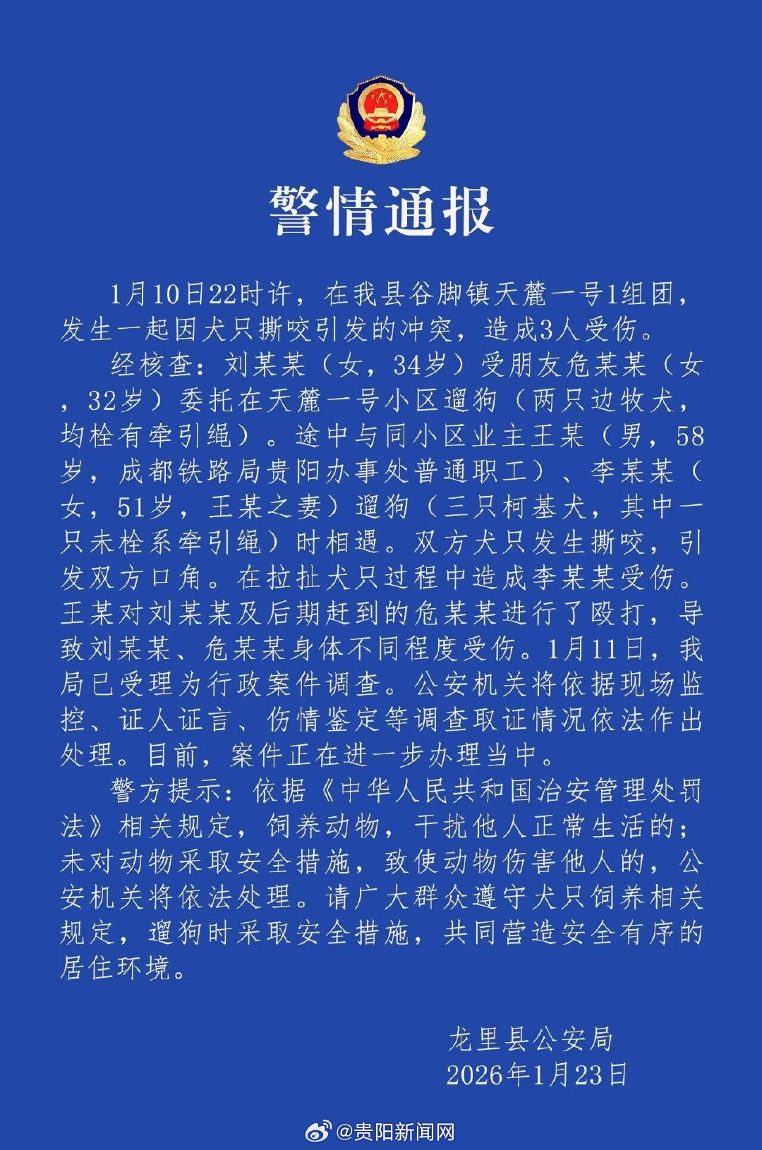 贵州龙里县通报犬只撕咬引发冲突事件:3人受伤,案件正进一步办理