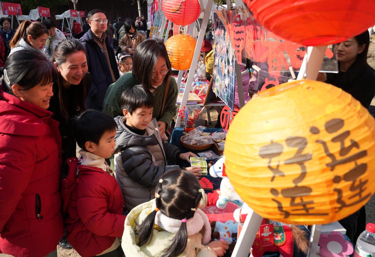 1月23日,社区居民在庙会上逛“新春市集”。新华社记者 韩传号 摄