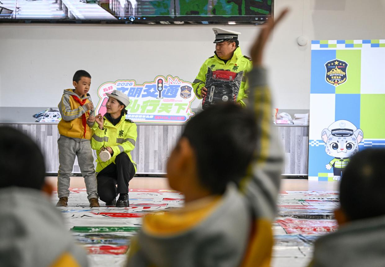 寒假将至,乌鲁木齐市公安局交通管理支队走进校园,开展“交通安全最后一课”主题宣传活动,通过游戏互动方式,寓教于乐,提高师生们交通安全意识。
